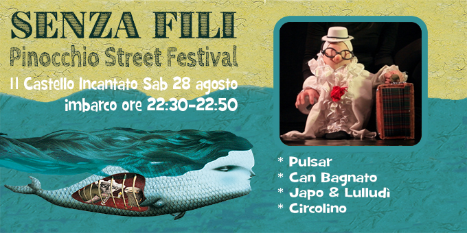 Sabato 28, Domenica 29 Agosto dalle 22:10 in 4 repliche CIRCOLINO in “Burattini in Carne ed Ossa” Piazza S. Antonio (Collodi Castello)